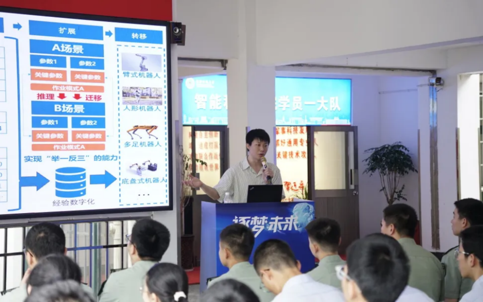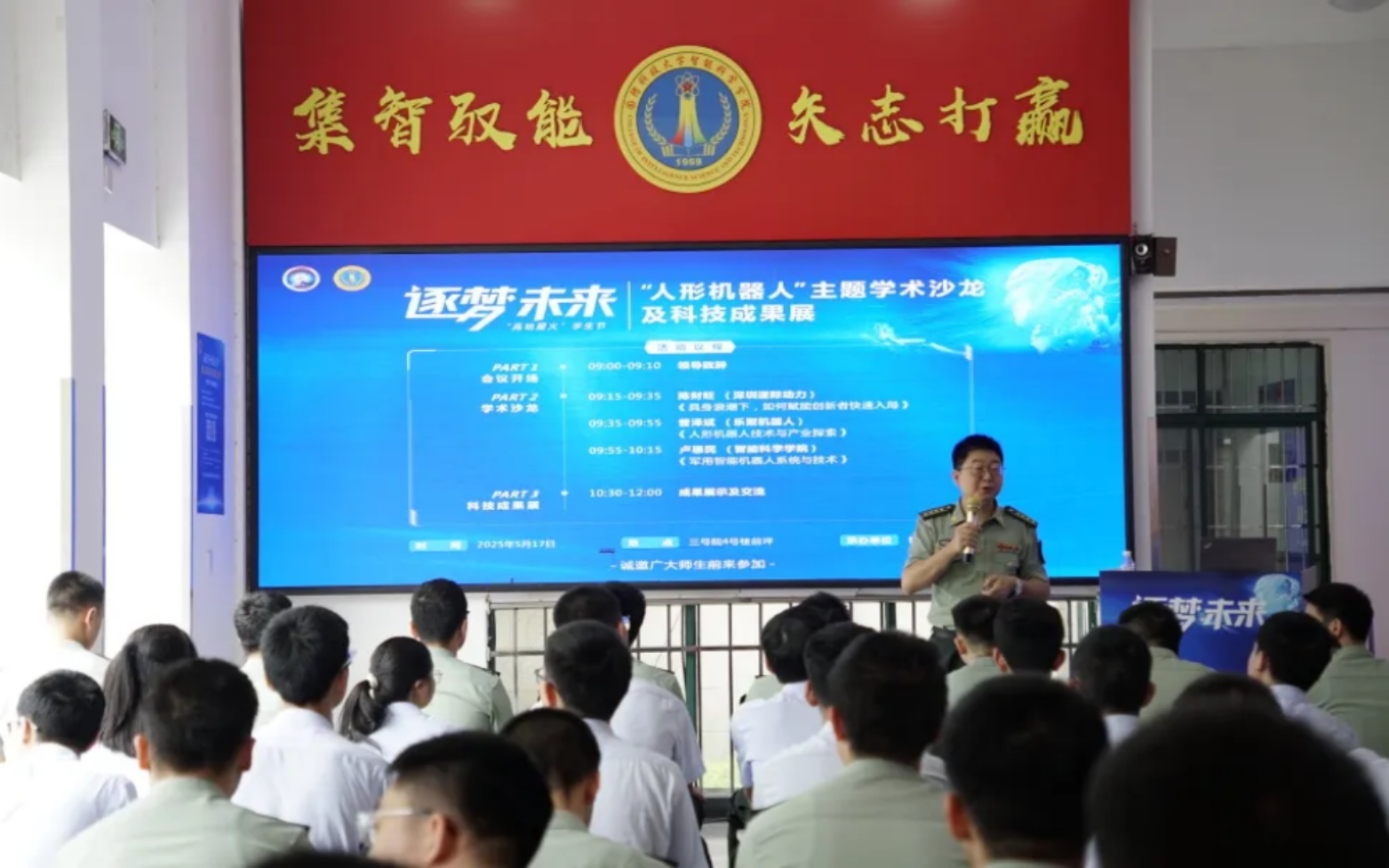 学术沙龙环节,智能科学学院首席专家卢惠民教授、逐际动力产品负责人陈财旺工程师、乐聚机器人人形项目负责人曾泽斌工程师分别作“军用智能机器人系统与技术”“具身浪潮下,如何赋能创新者快速入局”“人形机器人技术与产业探索”主题报告,报告内容全面呈现了人形机器人技术发展态势、产业落地及国防应用。