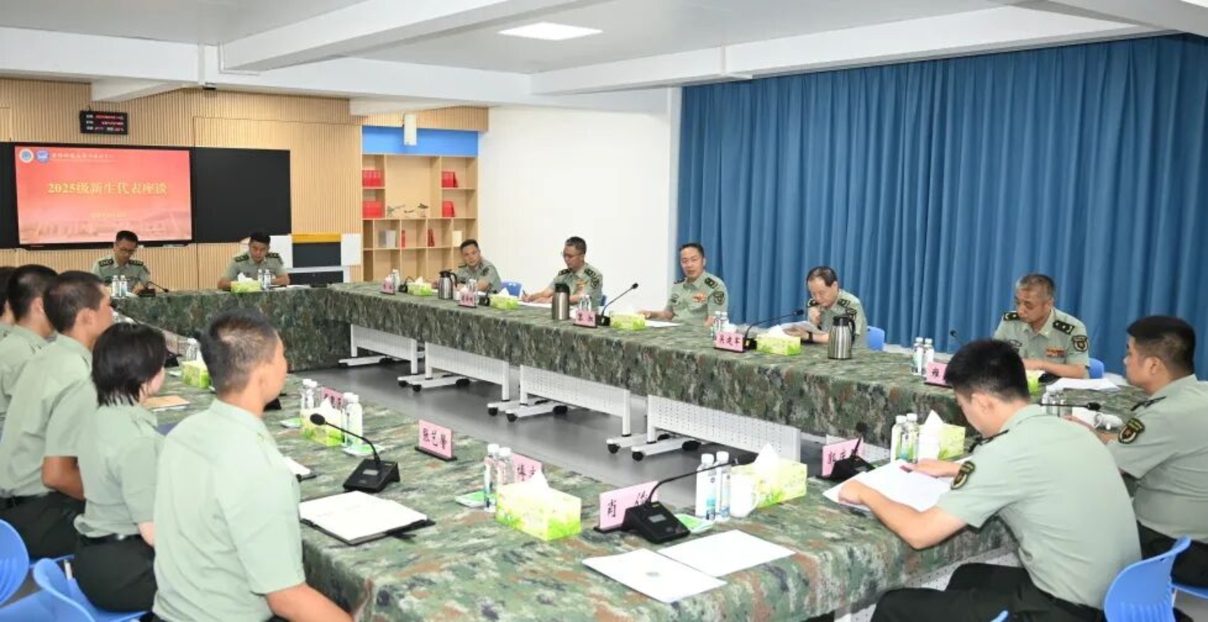 9月14日,milan米兰官网校长黎湘率学校机关工作组赴外国语学院看望2025级新学员,现地观摩了学员战术基础动作、队列和心理行为训练,参观迎新专业文化展,听取新训工作汇报,并与新学员代表座谈。
