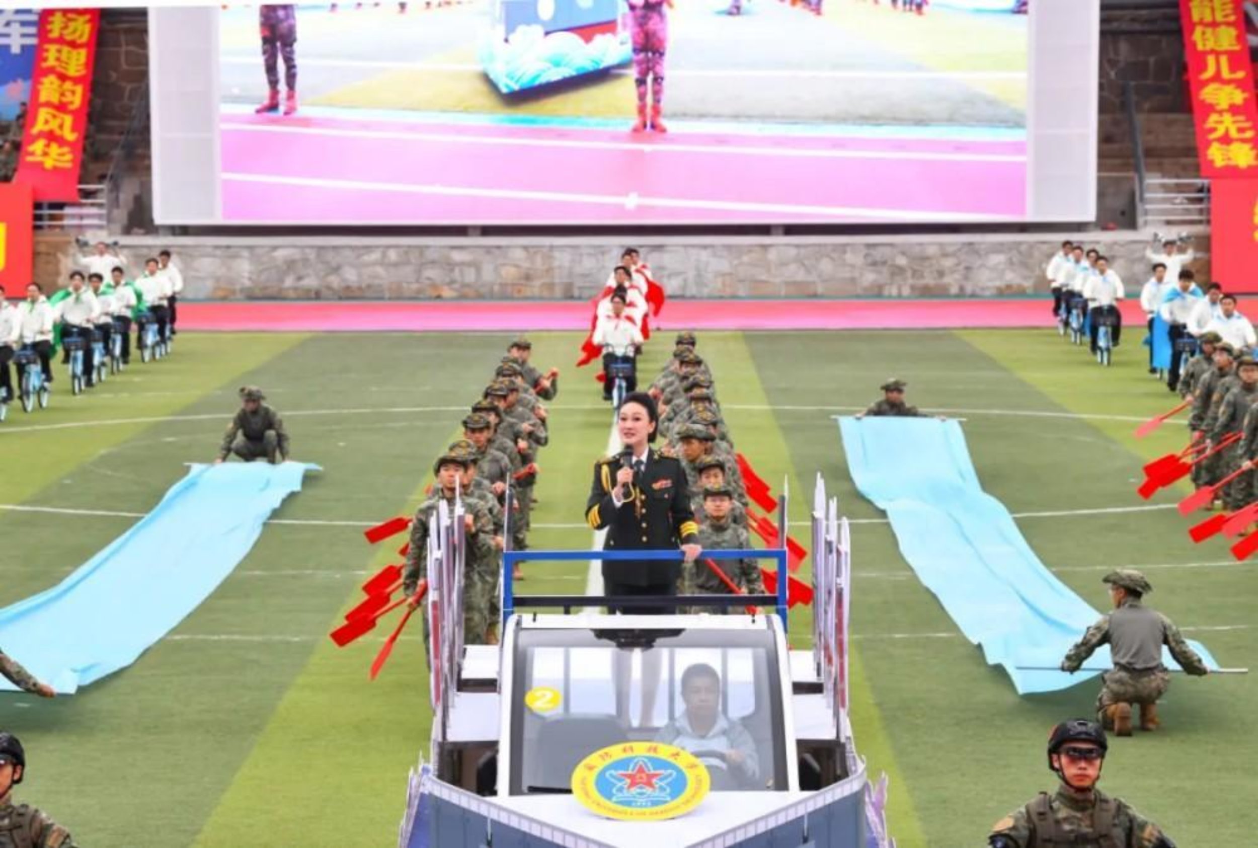 闭幕式在团体节目表演中拉开序幕。集智驭能,矢志打赢。智能科学学院为观众带来热血澎湃、激动人心的节目《高地之上 智胜未来》,传递出未来战场中智慧攻坚的磅礴气势。