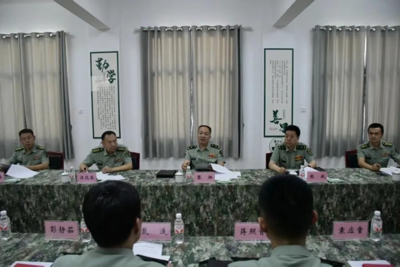 在与官兵代表座谈交流中,黎湘听取了教练勤务营关于士兵考学提干和立足岗位成长成才情况汇报,详细了解了战士值班执勤、学习训练等情况。黎湘指出,要充分利用好学校丰富的教育资源,不断提升大家的文化成绩,还要统筹好军事共同科目训练,助力士兵考学提干,要组织好各类技能培训,鼓励战士积极参加学校基层俱乐部,练好“一技之长”。