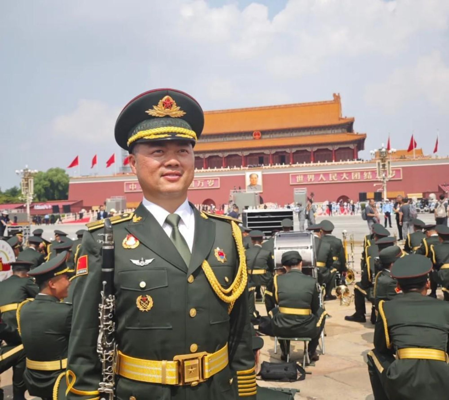 作为联合军乐团单簧管演奏员,系统工程学院某学员大队政治教导员黄忠在天安门前接受了党和人民的检阅。“当自主研发的先进武器装备列阵驶过,民族自豪感油然而生。阅兵现场,我饱含热泪奏响胜利号角,深切体会到祖国的强大。身为中华儿女,我无比自豪;作为中国军人,我更倍感骄傲。武器装备的高科技发展与学校紧密相连,我深知人才培养使命光荣,今后必将加倍努力,为军队培育更多堪当重任的栋梁之才。”