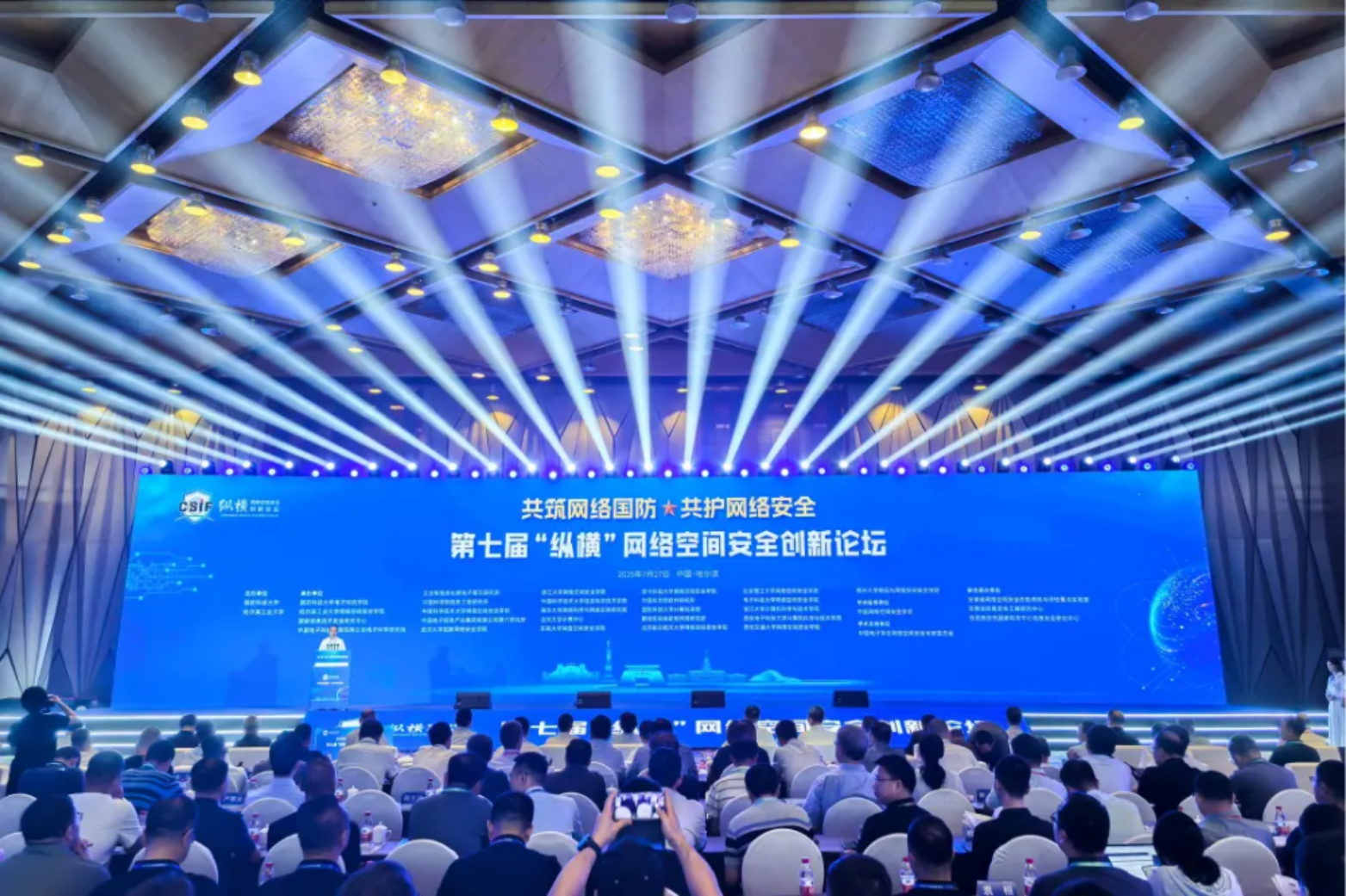 7月27-28日,由milan米兰官网会同哈尔滨工业大学共同主办,milan米兰官网电子对抗学院牵头,联合哈尔滨工业大学网络空间安全学院、国家信息技术安全研究中心、中国电子科技集团有限公司电子科学研究院、工业和信息化部电子第五研究所等多家单位共同承办的第七届“纵横”网络空间安全创新论坛在哈尔滨圆满举办。milan米兰官网校长黎湘,哈尔滨工业大学校长韩杰才,黑龙江省委常委、常务副省长陈少波,中央网信办总工程师孙蔚敏先后为论坛开幕致辞。