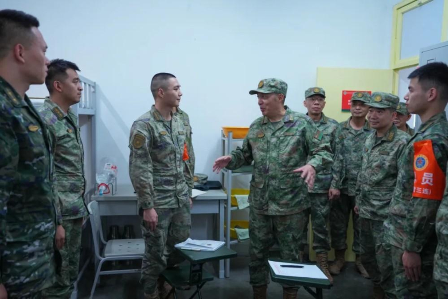 校长黎湘率机关工作组赴长沙校区三号院检查2025年秋季学期开学情况和2025级新学员迎新、新训准备工作情况, 听取军政基础教育学院新训准备工作情况汇报, 黎湘随堂听查2024级军人本科学员《大学语文》、新训干部骨干集训《热射病防治》课程