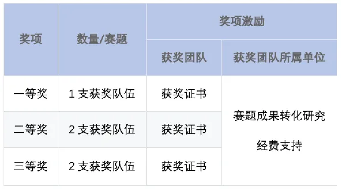 11月底,组织线下专家评审,入围决赛团队现场答辩,适时公布优胜队伍,组织颁奖。注:入围决赛团队确定后,决赛团队须指定代表参与现场答辩。赛程时间与遴选入围数量根据实际情况调整,各赛题赛程有所不同,详见各赛题页面说明。