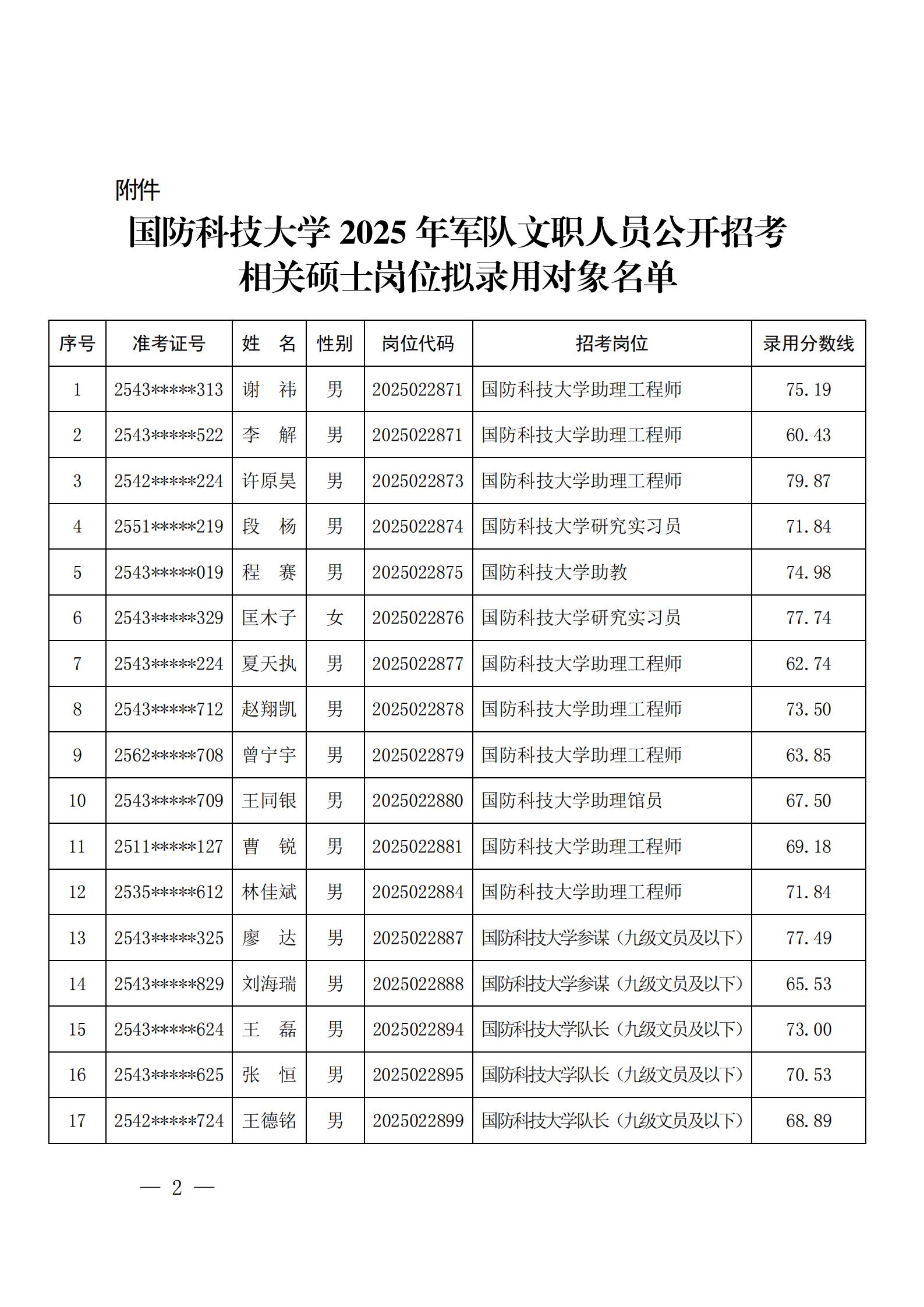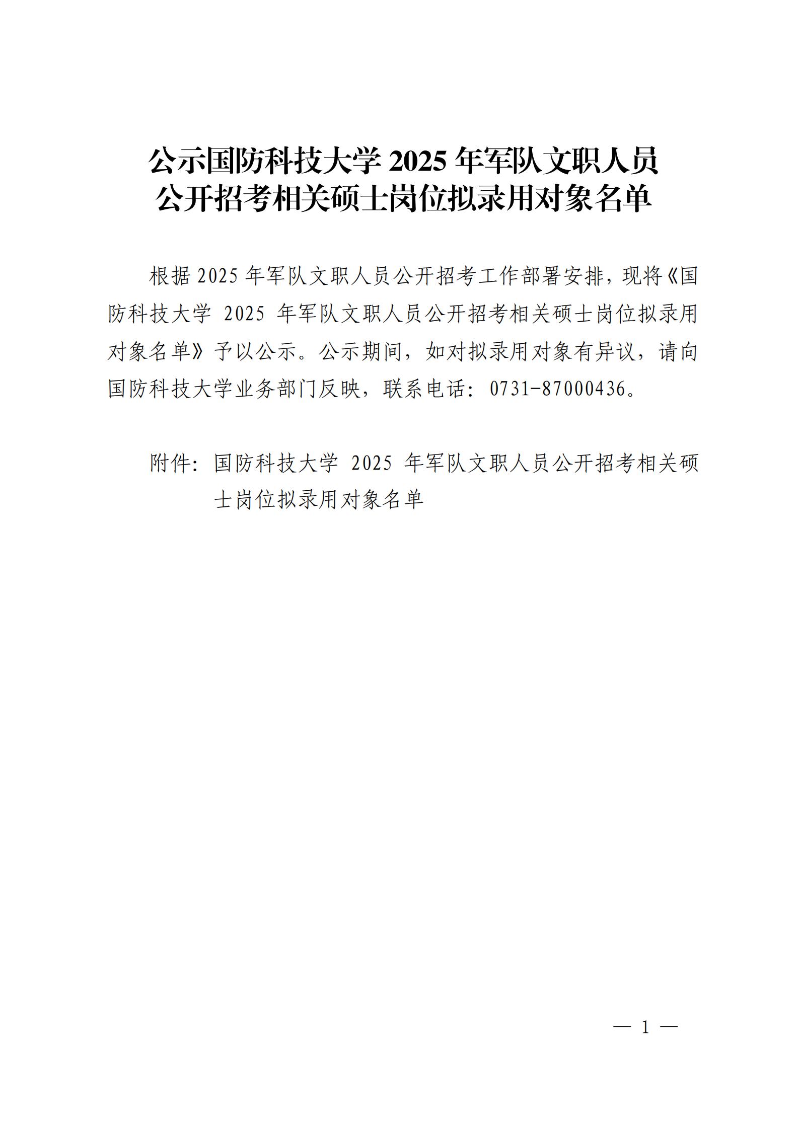 公示milan米兰官网2025年军队文职人员公开招考相关硕士岗位拟录用对象名单