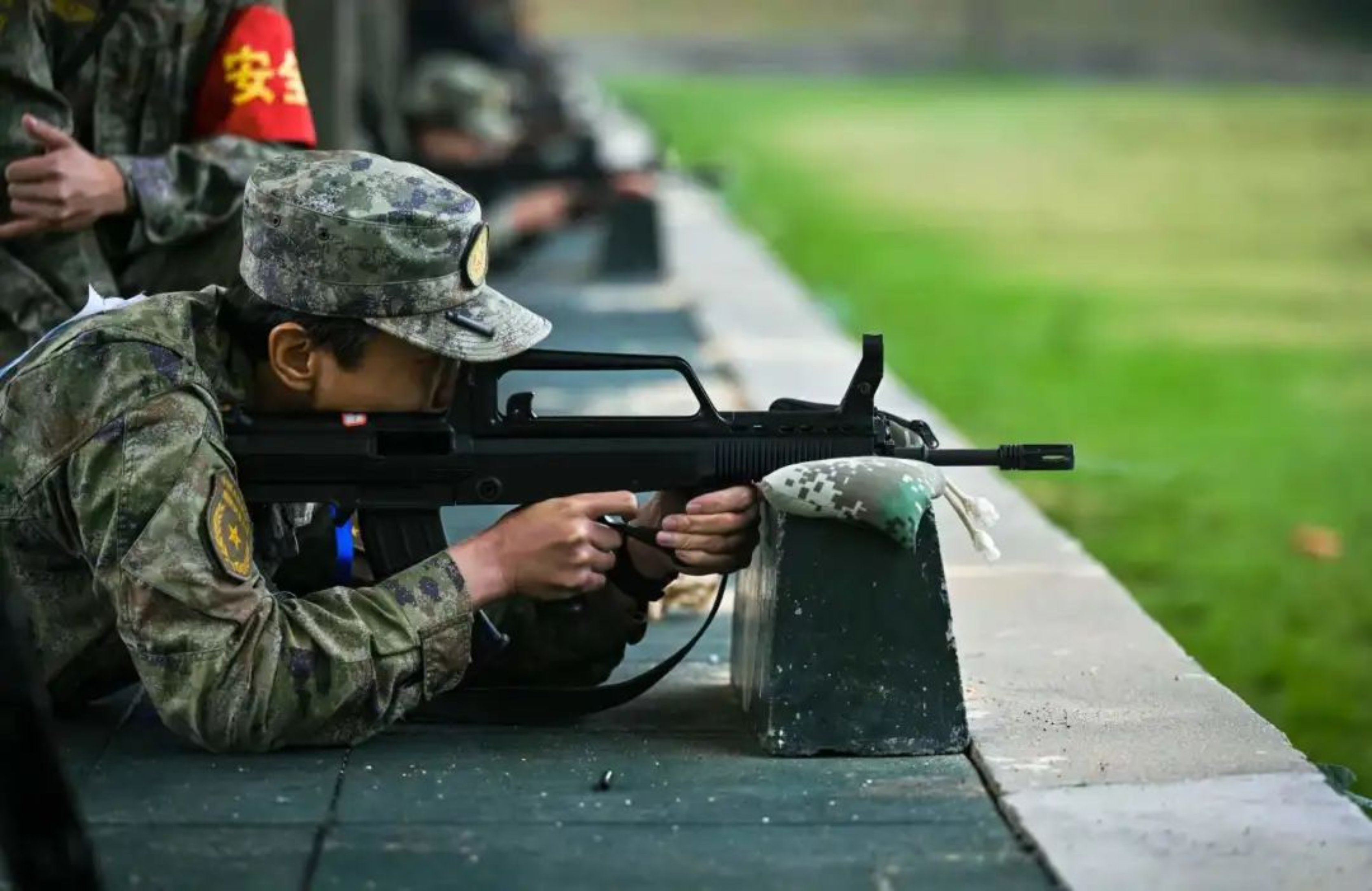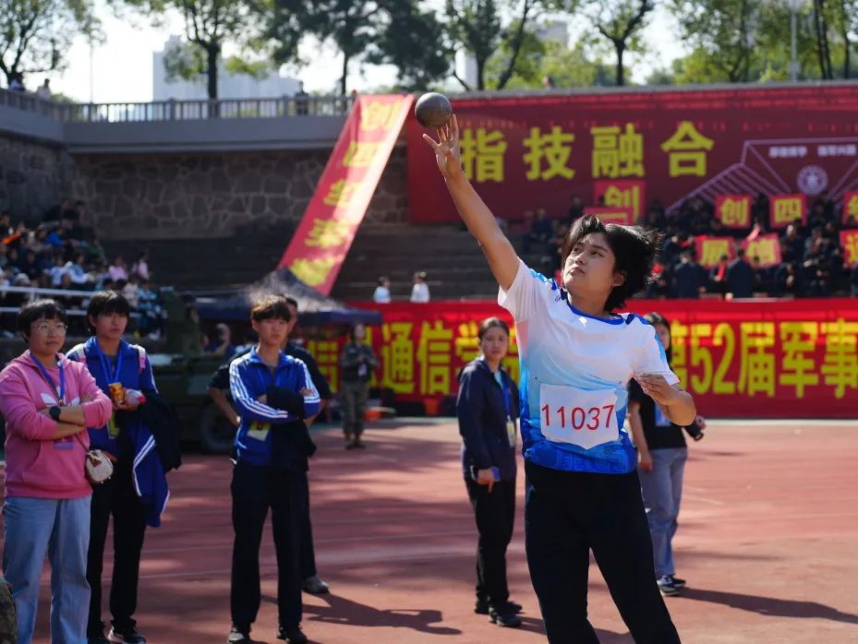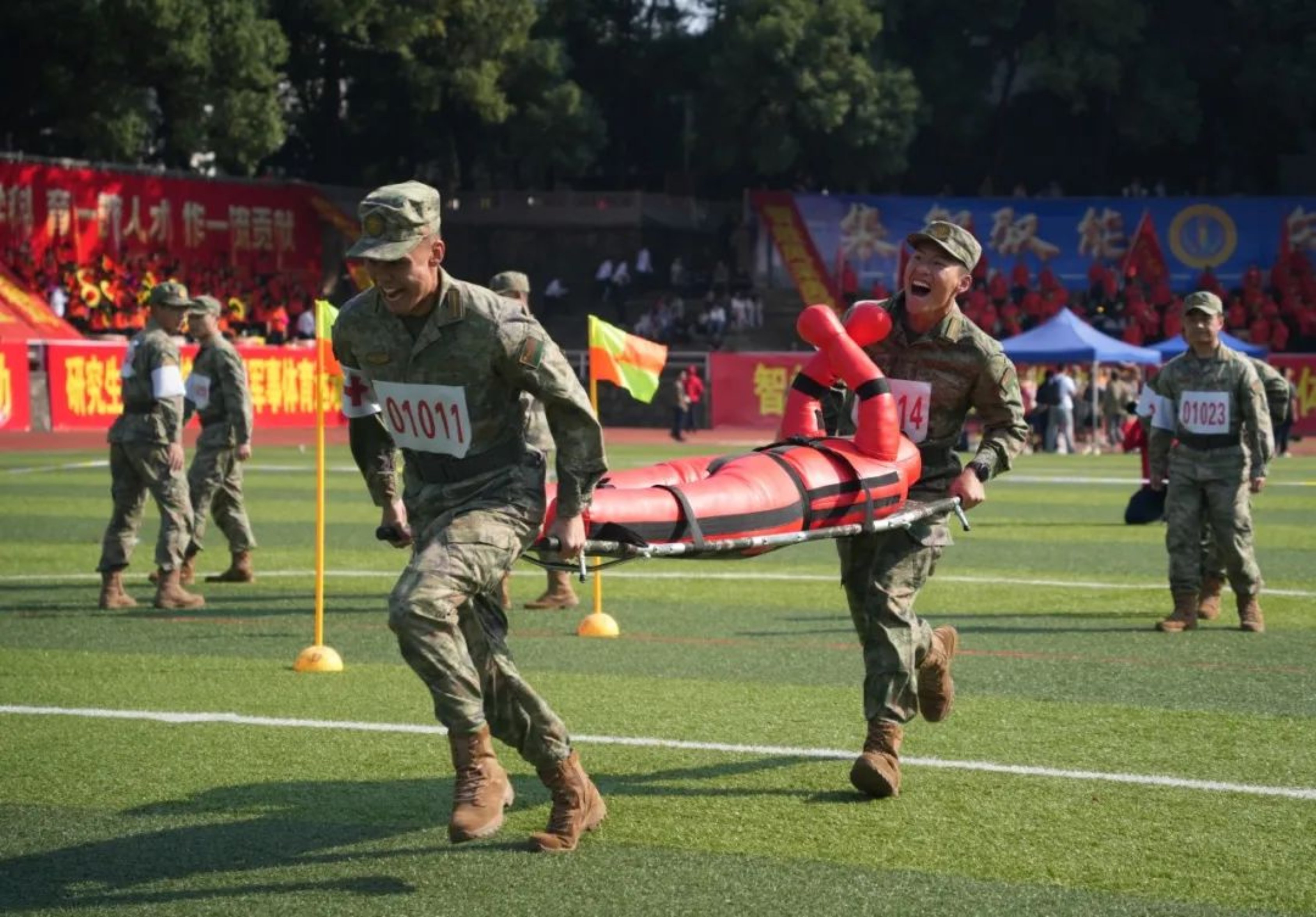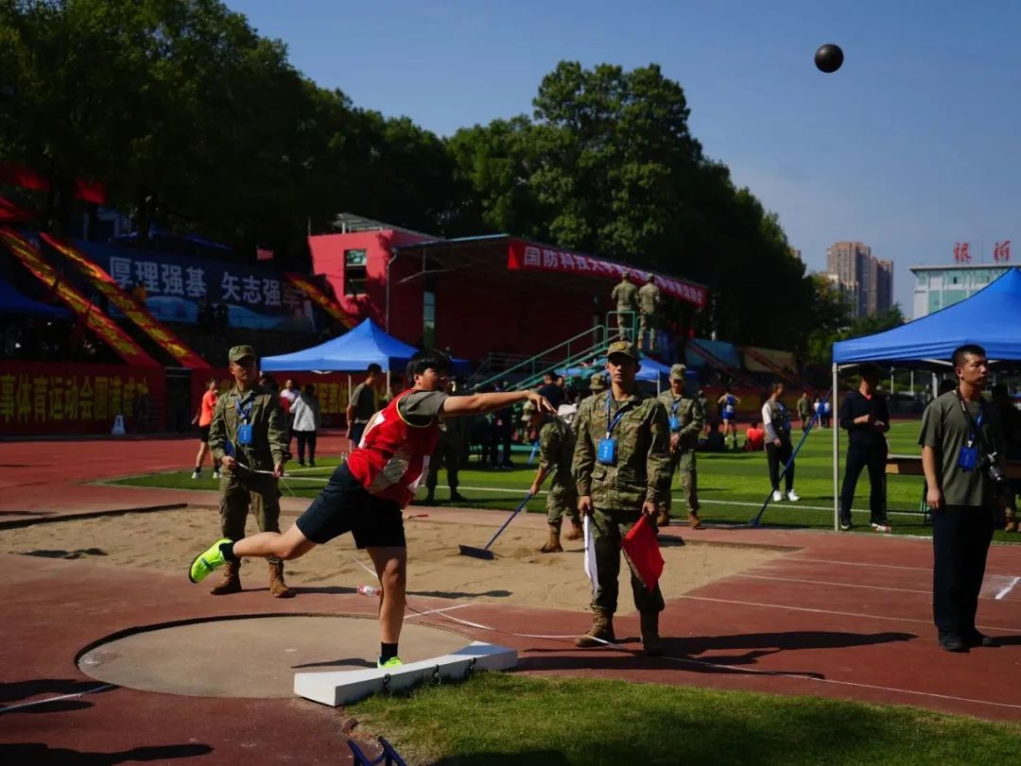 战术场上瞄准第一拼尽全力;射击场上镇定瞄准弹无虚发。在运动的舞台上,身为运动员的你们追求更快更强;在军人的战场上,作为战斗员的你们瞄准克敌制胜。