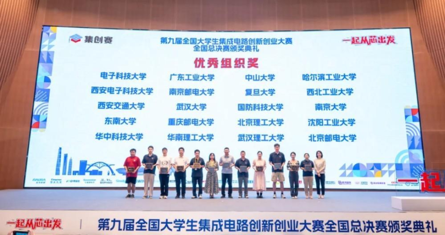 近日,第九届全国大学生集成电路创新创业大赛总决赛(以下简称“集创赛”)在上海海洋大学举办,本届集创赛自5月下旬开展初赛起,历时3个月时间,期间共吸引7400余支团队参加,覆盖全国500余所院校,参赛师生总数达25400余人。其中我校共有53支队伍、110余名师生参赛,经过7个分赛区的角逐,最终有15支队伍进入全国总决赛,斩获5个全国一等奖、1个全国二等奖、9个全国三等奖以及1个企业大奖(杯赛唯一)。