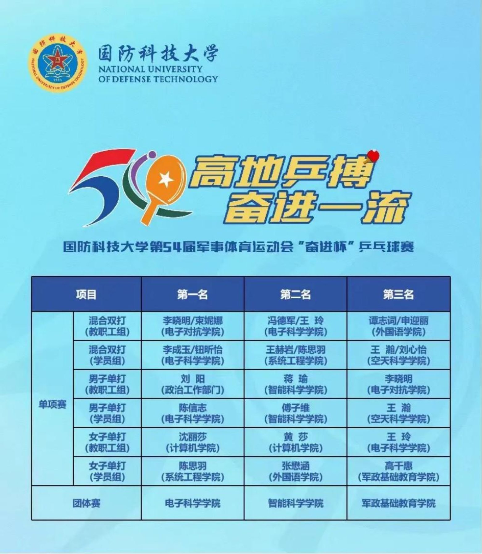 经过激烈较量,最终电子科学学院获得冠军,智能科学学院获得亚军,军政基础教育学院获得季军。