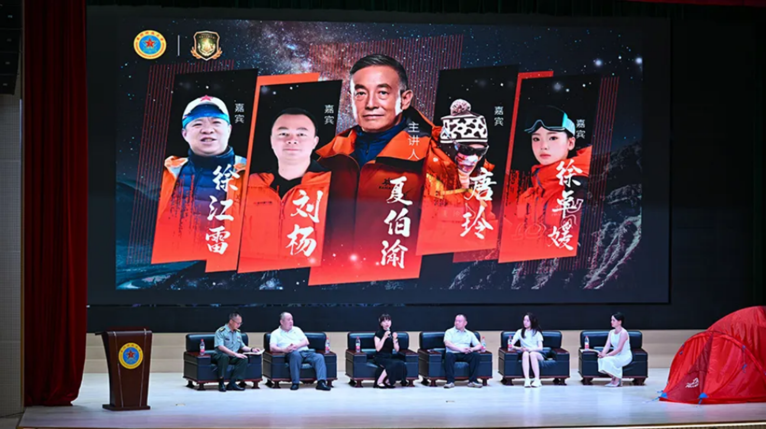 近日,军政基础教育学院邀请“全国自强模范”“时代楷模”夏伯渝及湖南省登山队四位珠峰登顶勇士,与600名学员共话攀登精神与强军使命。(徐铭阳、胡旭东)