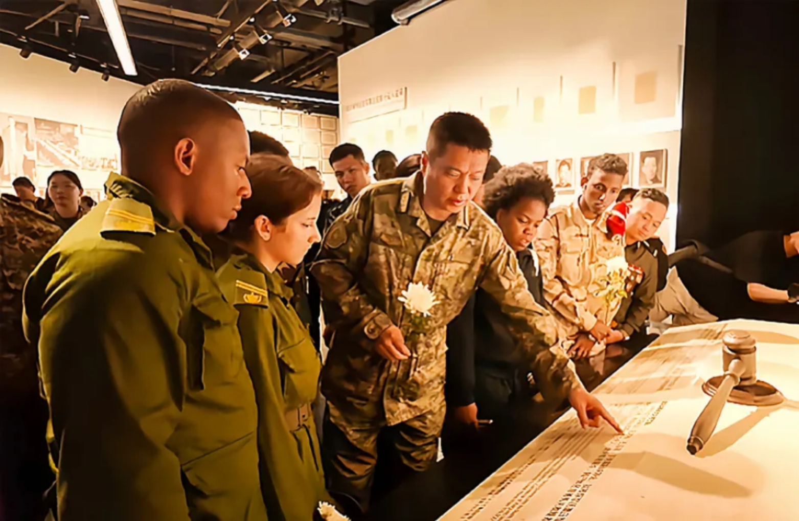 近日,外国语学院组织200余名外军学员走进北京、延安、南京、西安等地,开展多堂跨越国界的和平教育课。图为外军学员参观侵华日军南京大屠杀遇难同胞纪念馆。(张鑫)