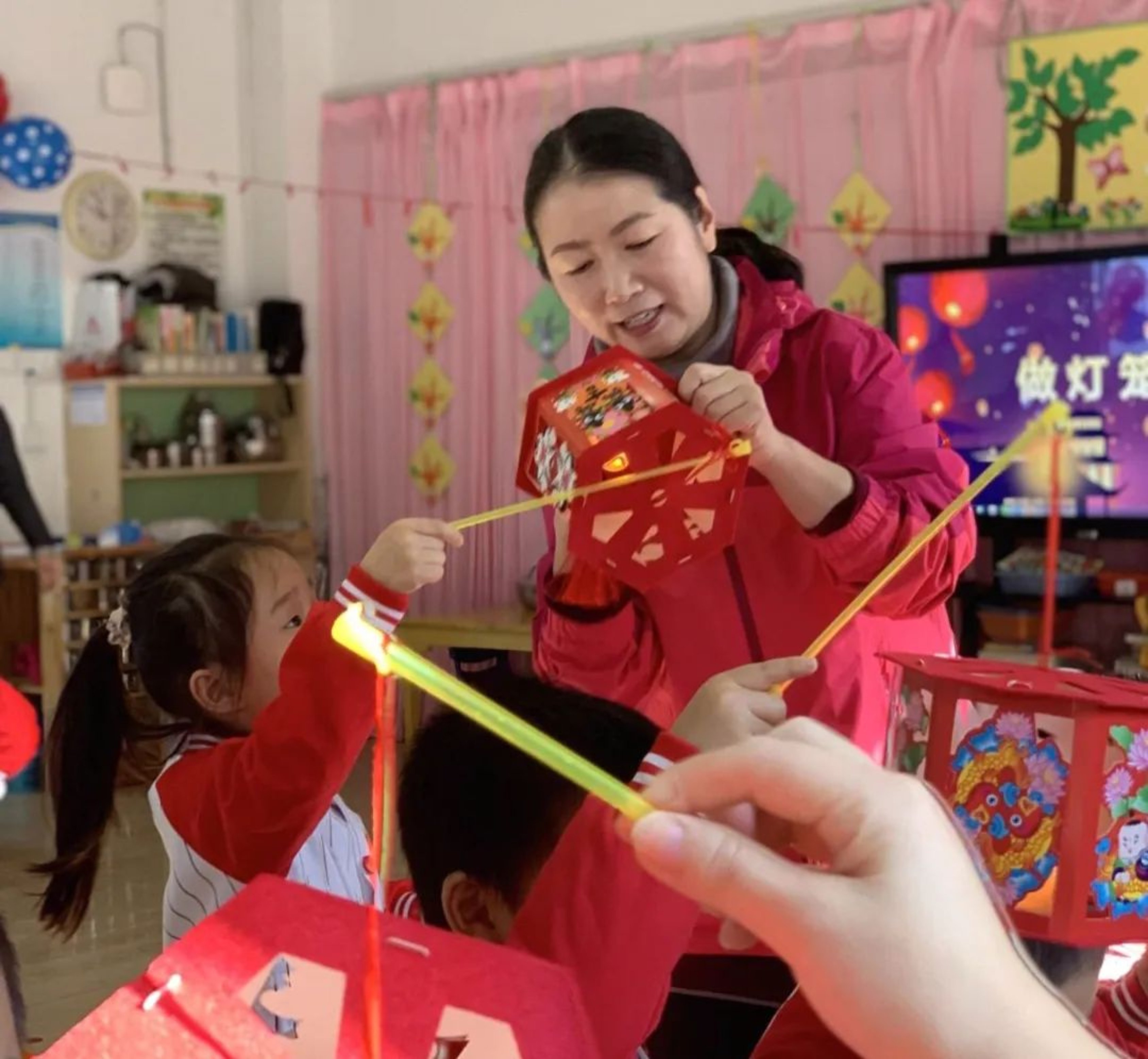 唐正带领幼儿园小朋友开展活动