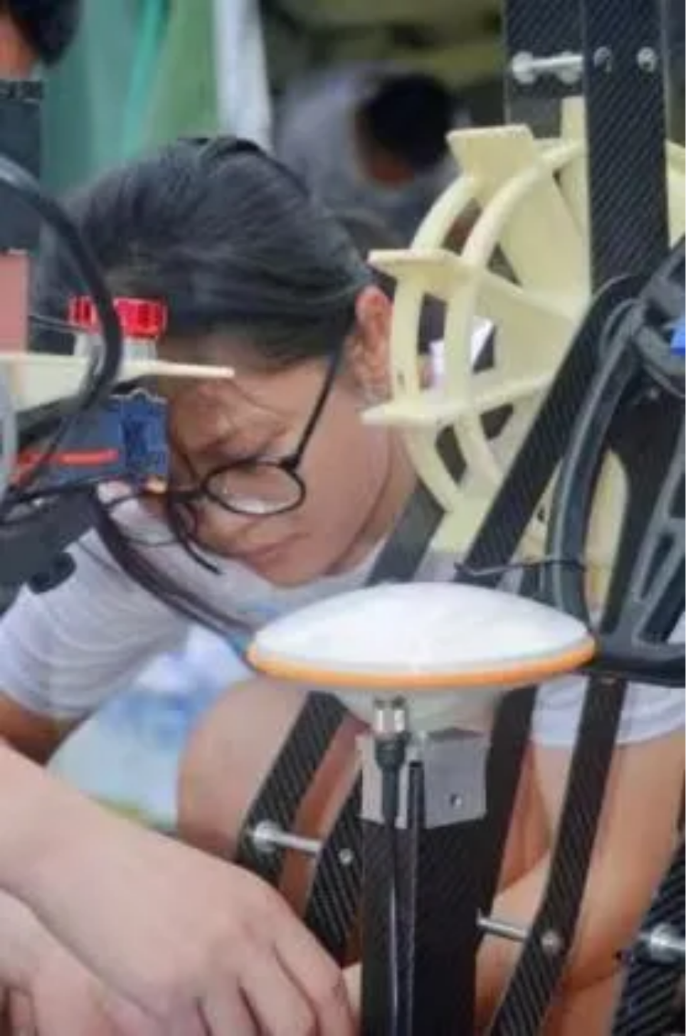 作为机械工程专业的学生,除了对专业知识的掌握,对动手能力也有着较强的要求,动力学的计算与测量、机器人的拼装与拆卸、故障的排查与检修,成千上百种机械零件的分类时常让刘琳“心力交瘁”,可是总有一个声音告诉刘琳应该逼自己一把,不怕没有结果,只怕吃不了苦、提前退缩。刘琳课业之余抓住一切可以提高实践能力的机会,38℃的操场上,总能看到刘琳和她的队友们一遍遍测试设备性能,实验室内,总有她拿着工具检查维修的身影,她很快成长为一个“机械人”,打螺丝时刘琳可以准确辨识螺丝型号,安装履带时可以精准判断安装位置,实践经验的积累也更好地反馈到了机械的设计与建模之中,相辅相成。大四时刘琳作为机械组的一员赴埃及参加国际无人机挑战赛地面无人车比赛,经过激烈角逐斩获冠军。