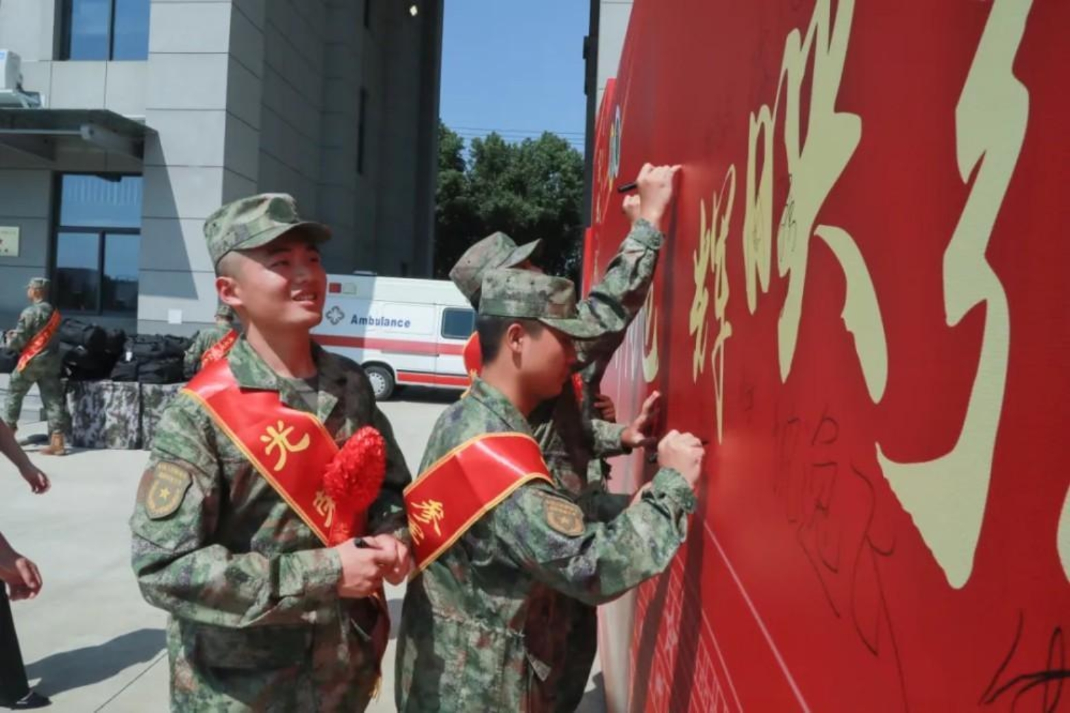 迎新仪式现场,最吸引眼球的还是那一抹抹大红色。“砺剑高地,辉映强军新征程”的签名墙前,新战友们郑重落下笔墨。每一笔都饱含着从军报国的赤诚,每一个名字都镌刻着建功米兰的壮志。这不是简单的签名,而是对家国的深情告白,更是对建功米兰的庄严承诺:选择军营,便意味着选择奉献;穿上军装,就扛起了责任担当。从踏入军营的那一刻起,他们便将个人理想融入“高地”,以初心为灯,用誓言铸魂。