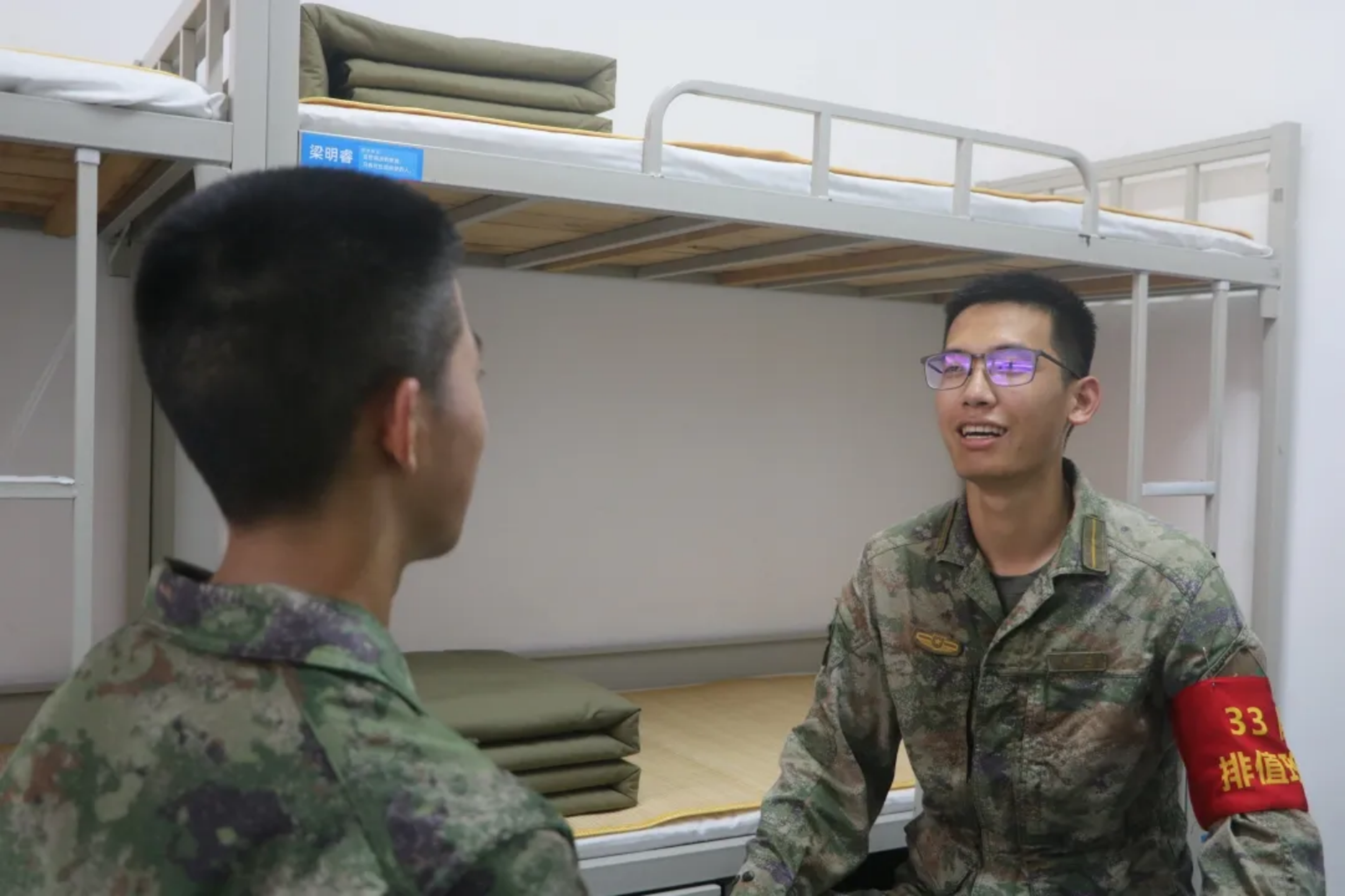 仍然清楚地记得两年前初入军营,第一次叠军被,第一次站军姿,第一次紧急集合……这些第一次都是我的帮训班长教导我的,他让我明白了军人二字真正的意义。现如今,我经历了两年的锤炼,也成为了一名帮训班长。我感到无比自豪,但又深知肩上的责任之重。亲爱的新战友们,我会尽己所能倾囊相授,让你们在火热军营中实现自己的价值,成为更好的自己!——姚盟