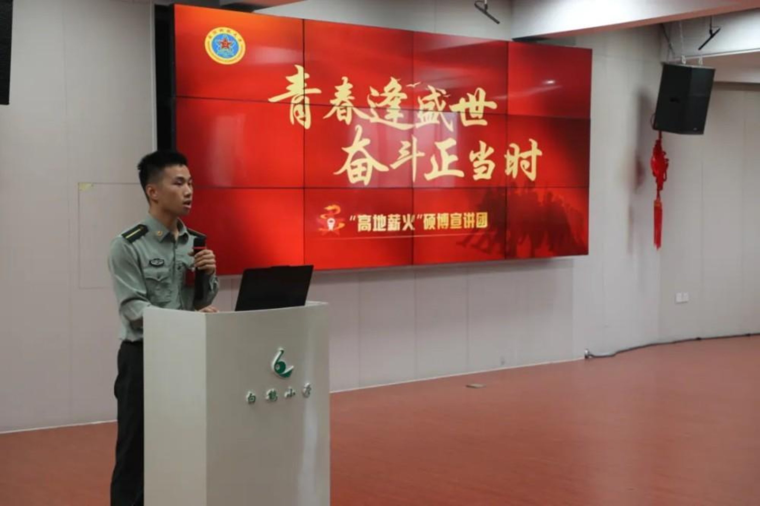 活动中,“高地薪火”硕博宣讲团首次吸纳本科学员与地方研究生共同组成宣讲队伍,走进中小学开展实践宣讲。近年来,宣讲团作为“行走思政”重要载体,有效打通了军队院校优质资源服务地方基础教育、助力国防教育普及的“最后一公里”,将课堂理论学习转化为实践能力锤炼,在学思用贯通、知信行统一中深化育人效果。