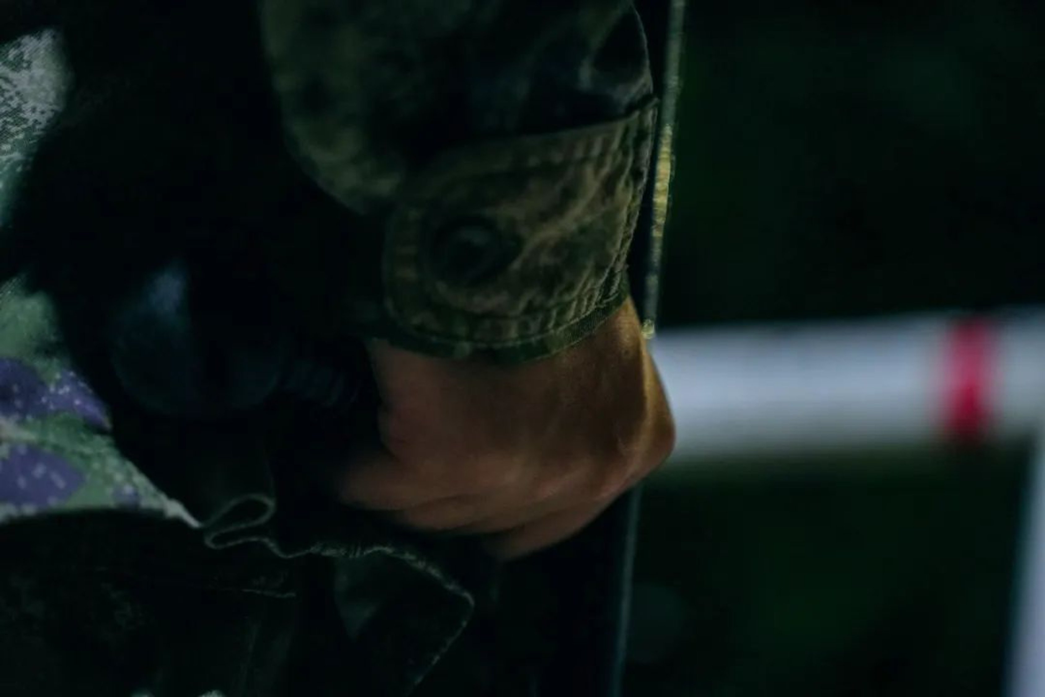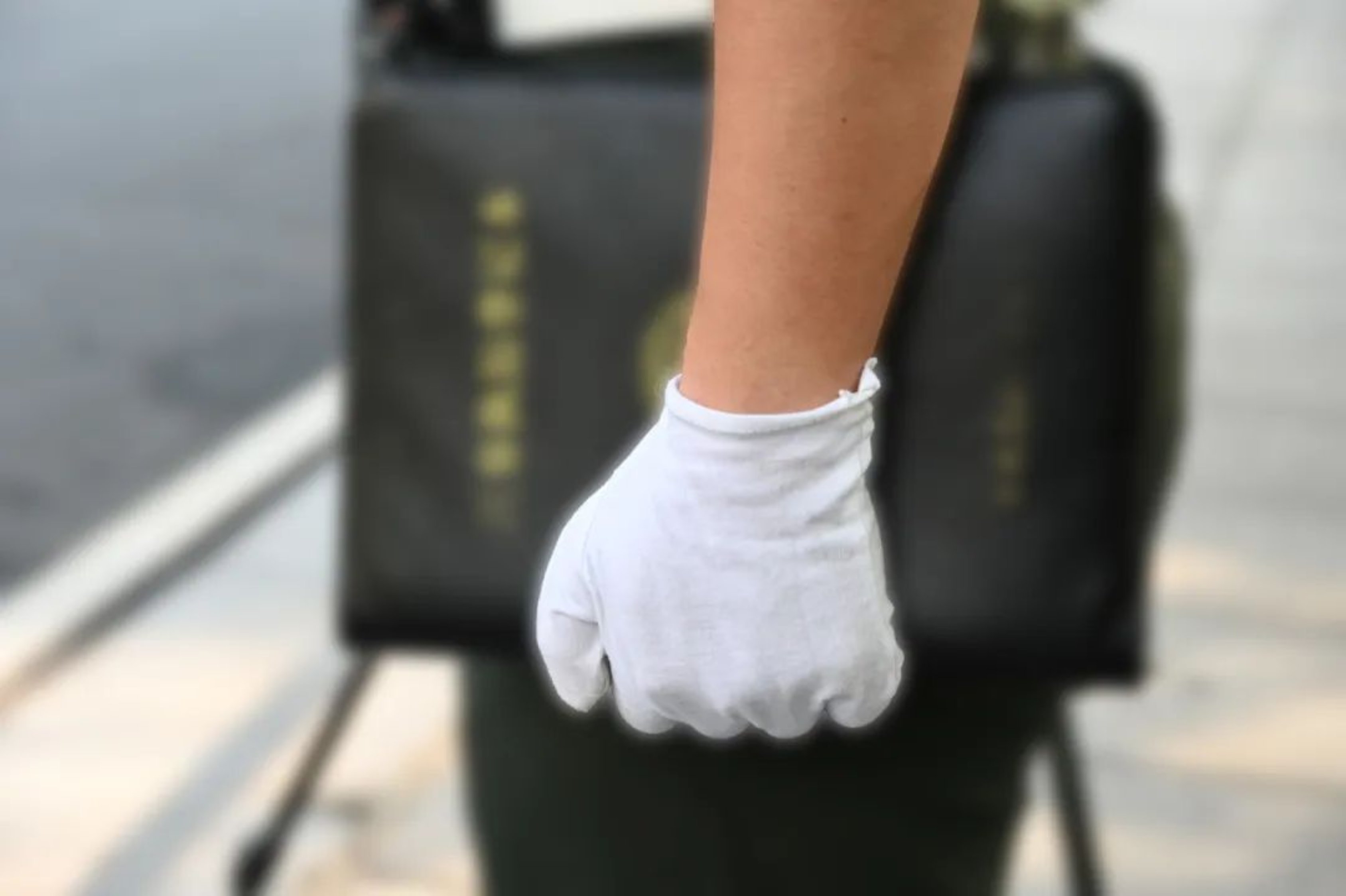 这是一双紧握警棍的手