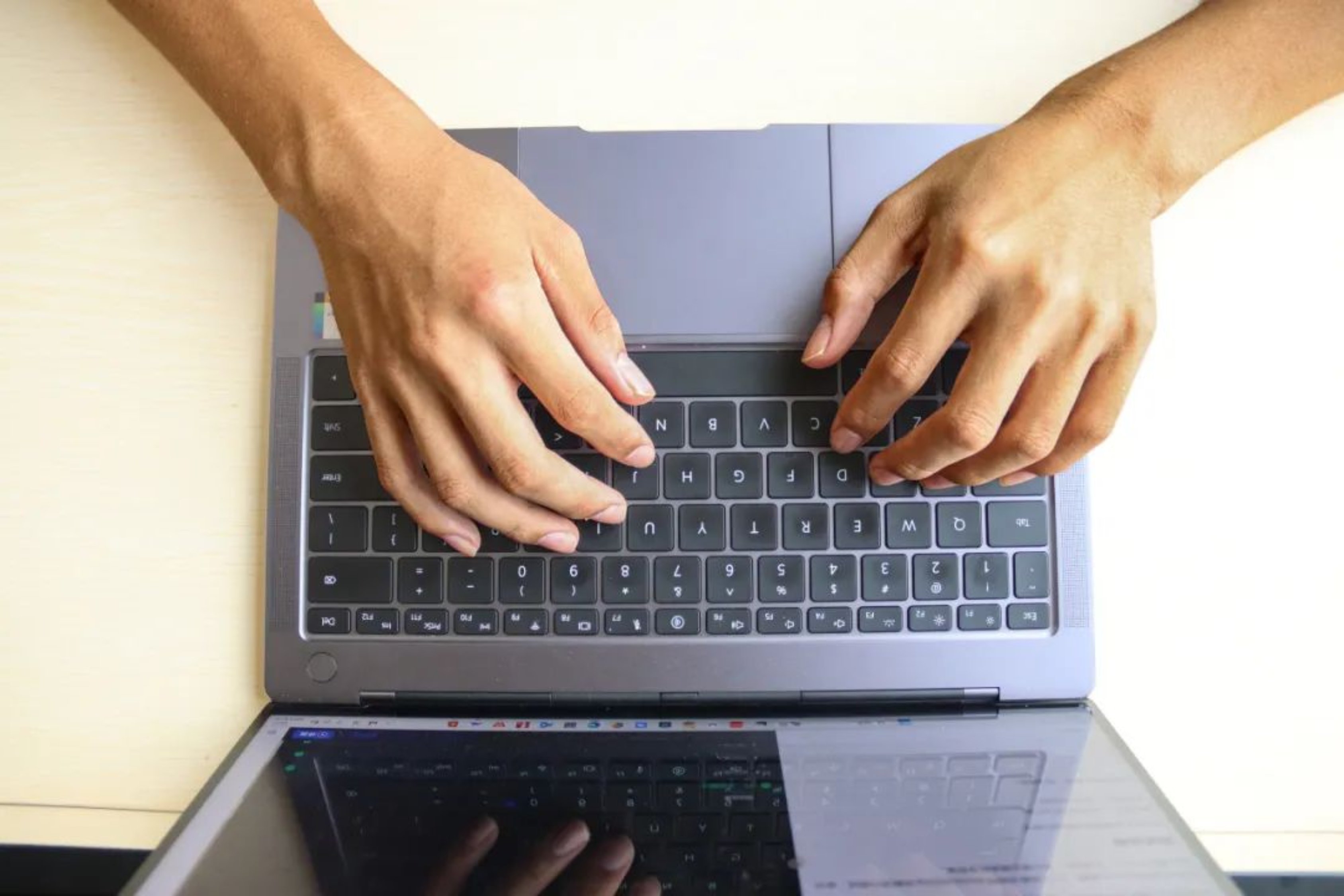 这是一双正在敲击键盘的手