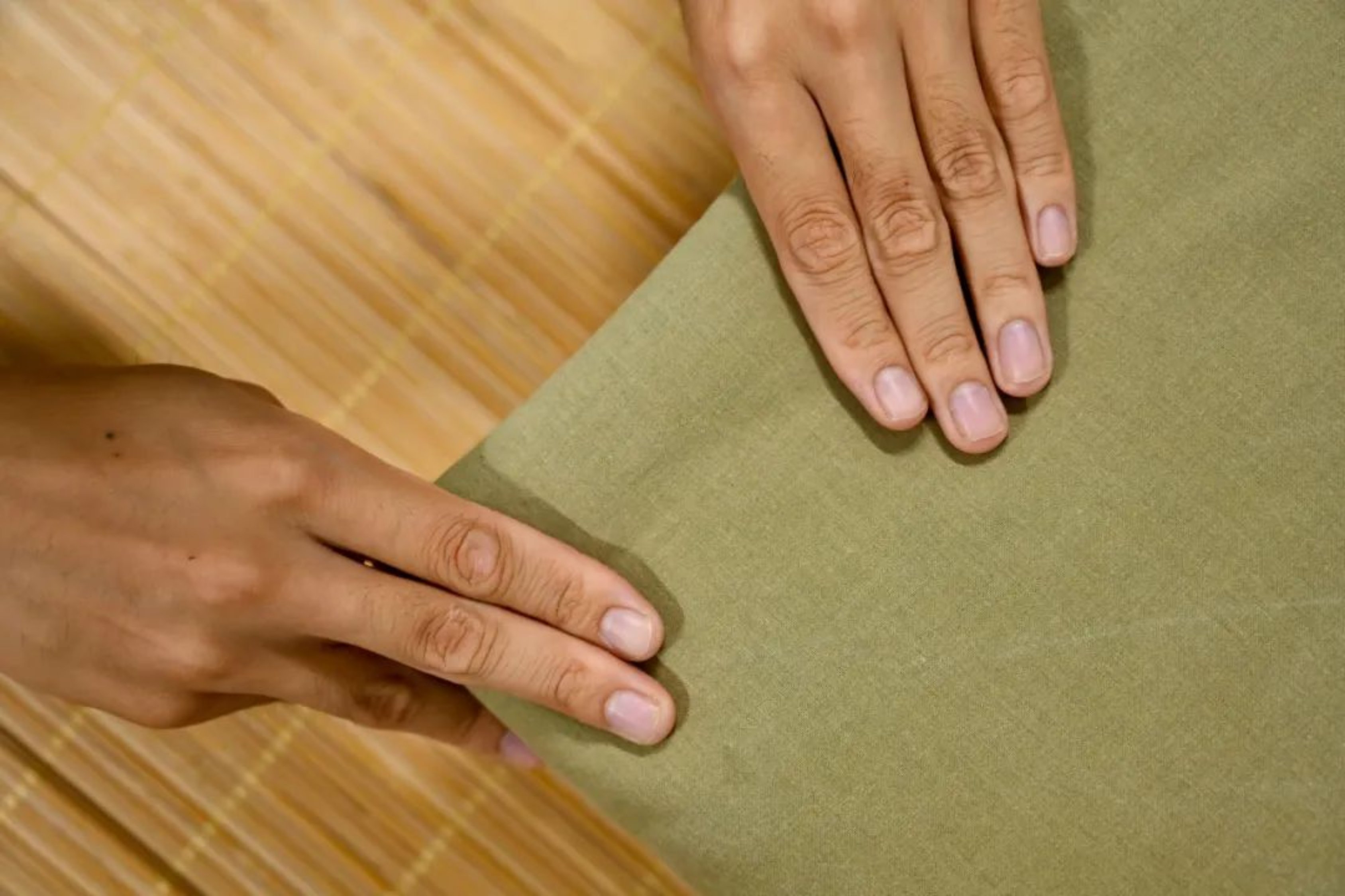 这是一双正在叠军被的手