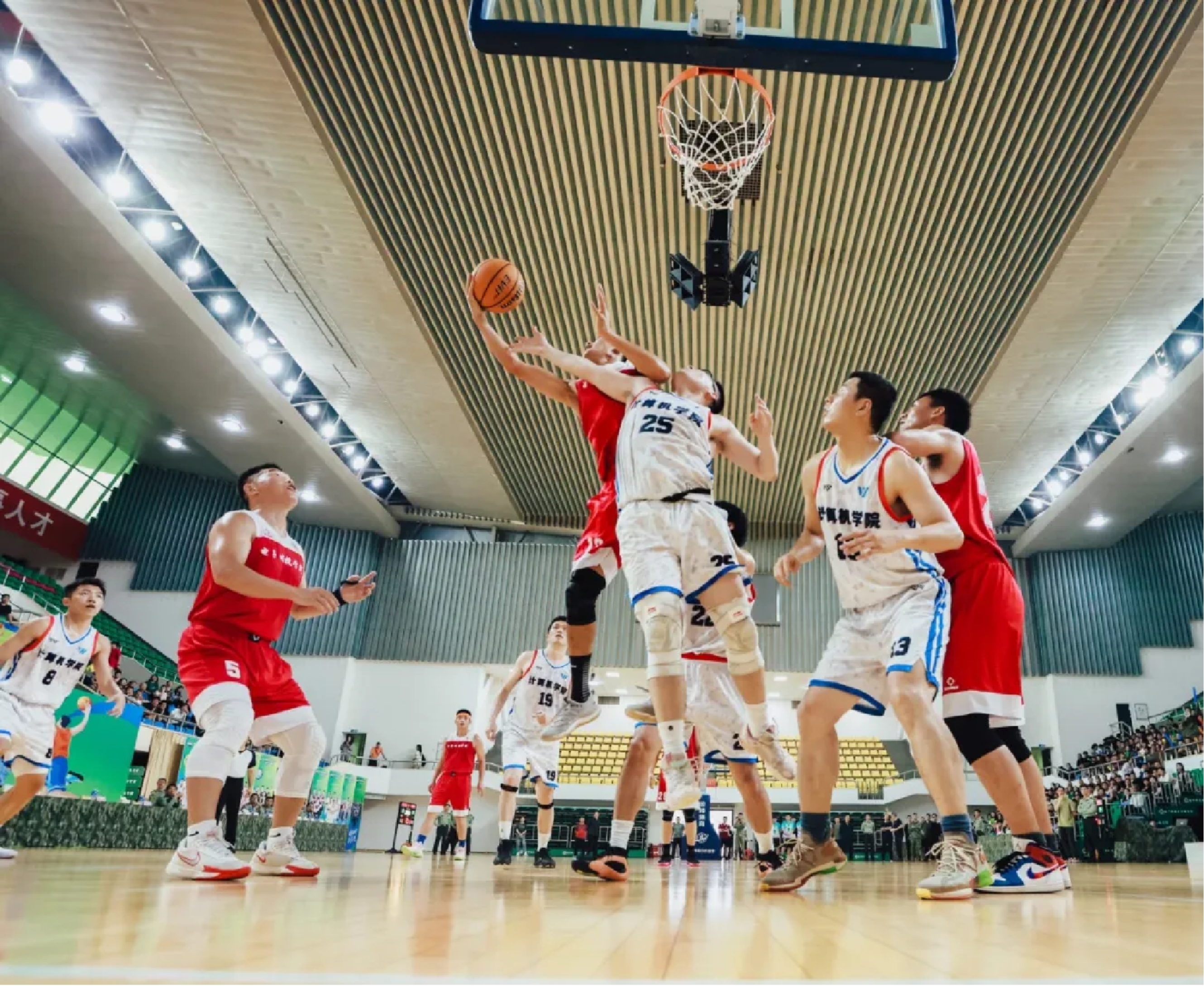 双方队员全力争夺球权