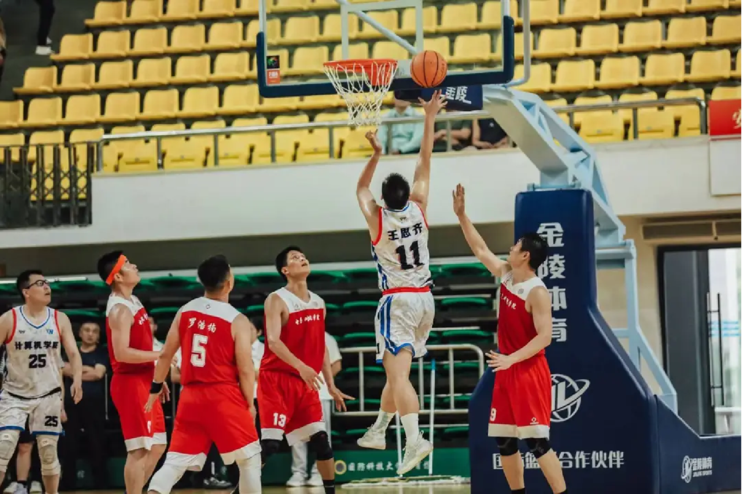 此次系列赛全校共有20支队伍参加,经过11个比赛日的角逐,贡献了50场精彩绝伦的比赛。前中国职业篮球运动员王治郅为篮球赛加油助力并送上亲笔签名篮球。