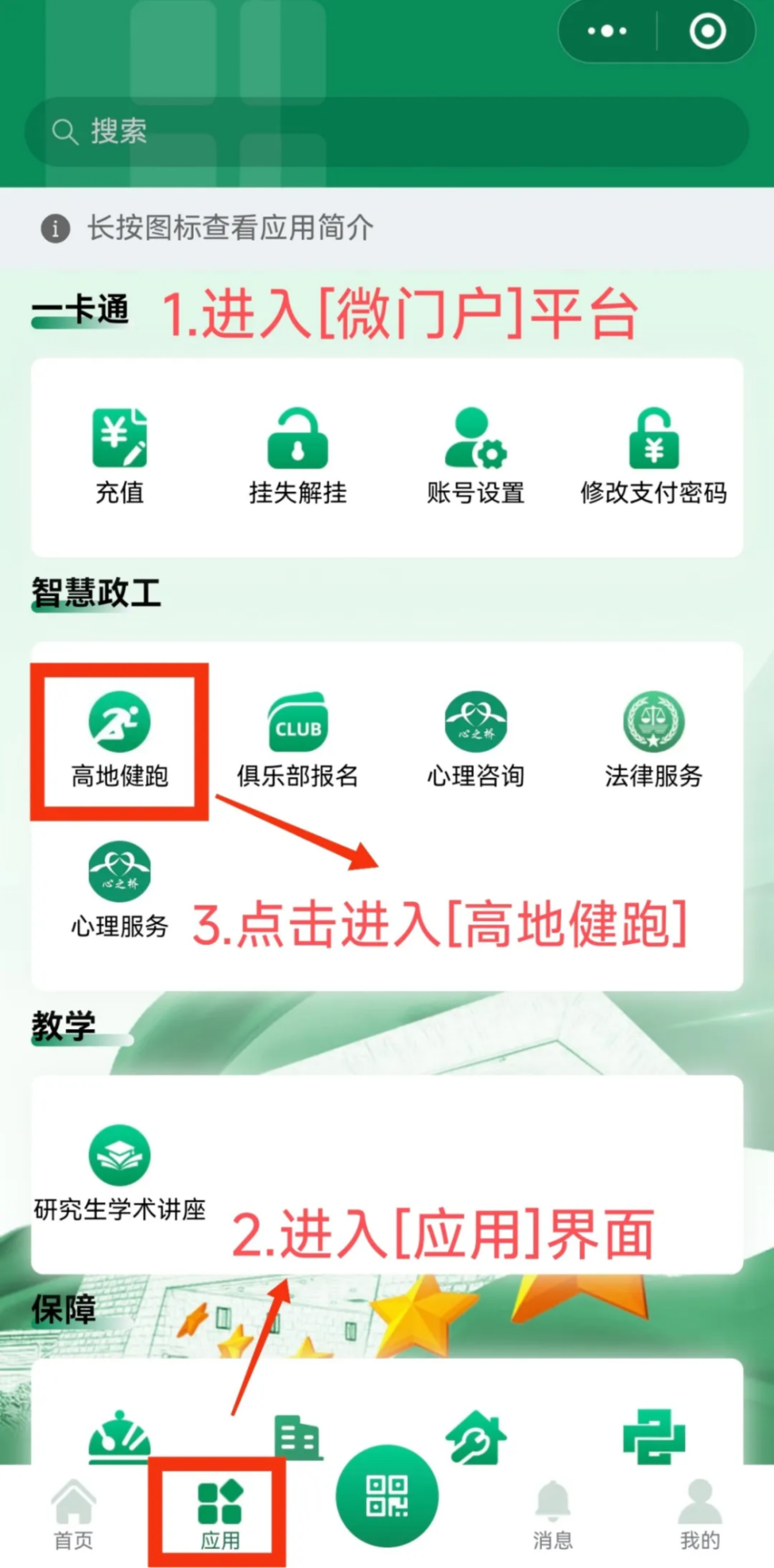 打开米兰微门户 → 「应用」界面 → 「智慧政工」 → 点击 「高地健跑」
