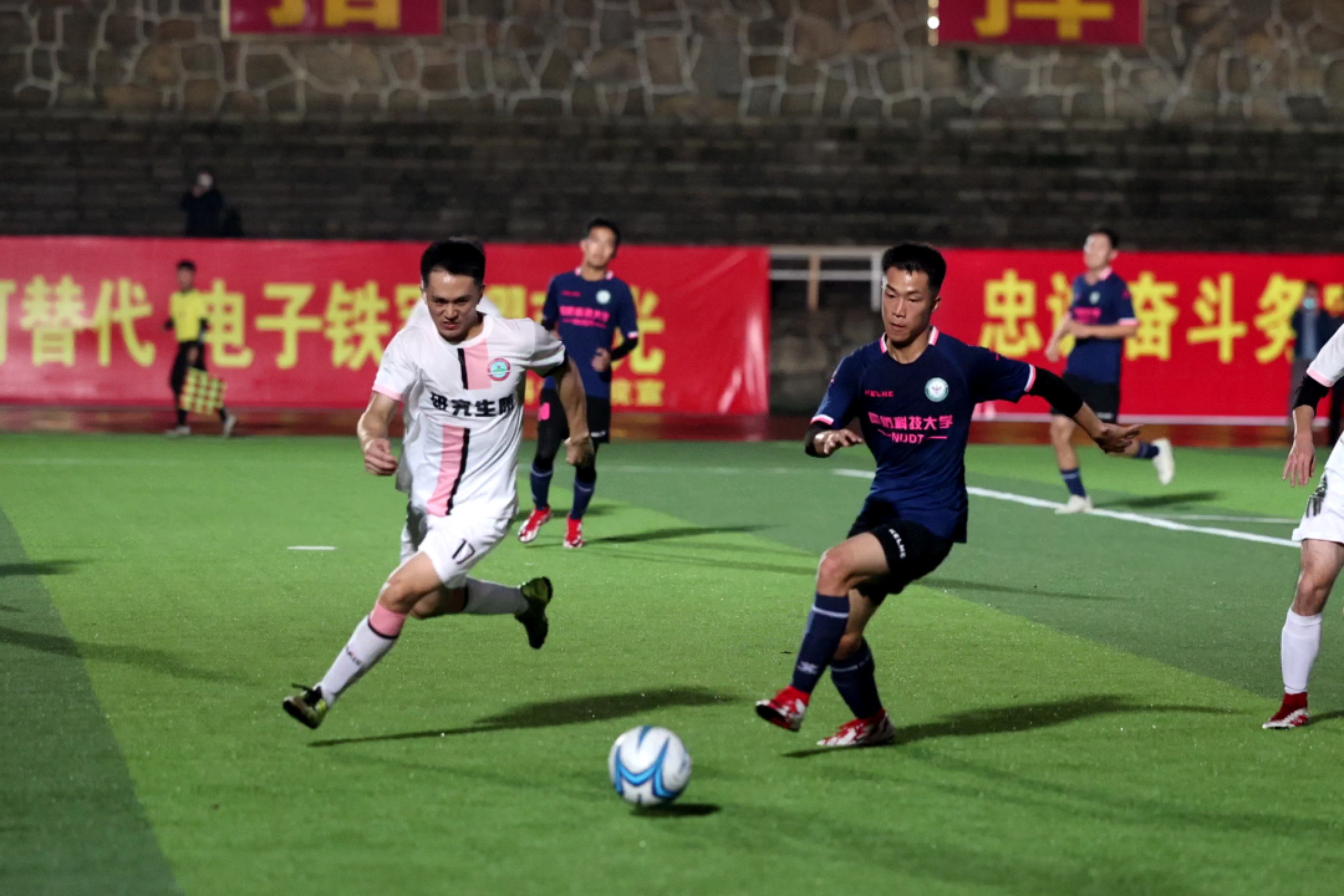 11月5日晚,薄雾蒙蒙,白天校运会的硝烟还未散去,“奋进杯”足球决赛的战火又在国防米兰长沙校区一号院田径场点燃。