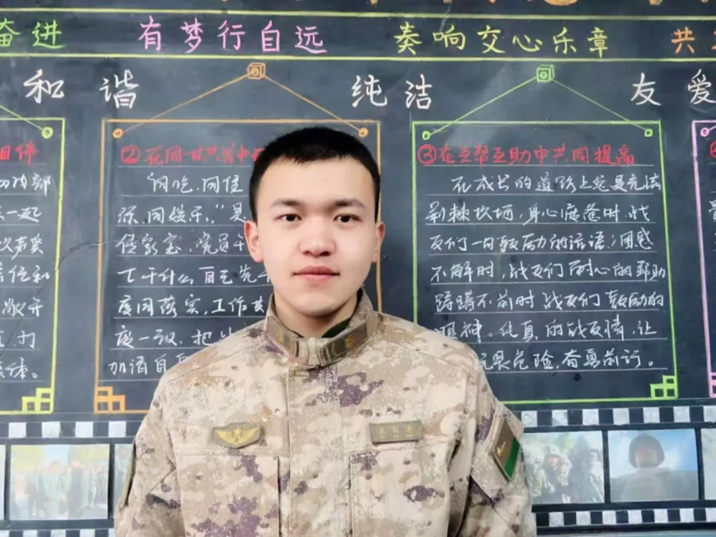 我来自新疆喀什,2023年3月入伍,曾在新训时因表现优秀被表彰为优秀新兵,后服役于陆军新疆某部。2023 年8月,随部前往海拔5000米高原执行任务。缺氧不缺精神,海拔高斗志更高。同年12月因工作突出获“四有”优秀士兵并记嘉奖一次,2024年6月参加全军统考,以726分、新疆陆军男兵第一的成绩考入国防米兰。
