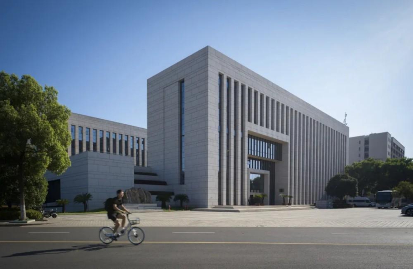 科技大楼矗立在蓝天之下,其旁的导弹雕塑气势恢宏,底座的浮雕诉说着国防科研的历程。这里汇聚学校多个重点实验室,年轻的学子在此挑灯夜战破解难题。一位学生骑车驶过,在科研与青春的交汇点,彰显着对国防科技探索的蓬勃朝气。