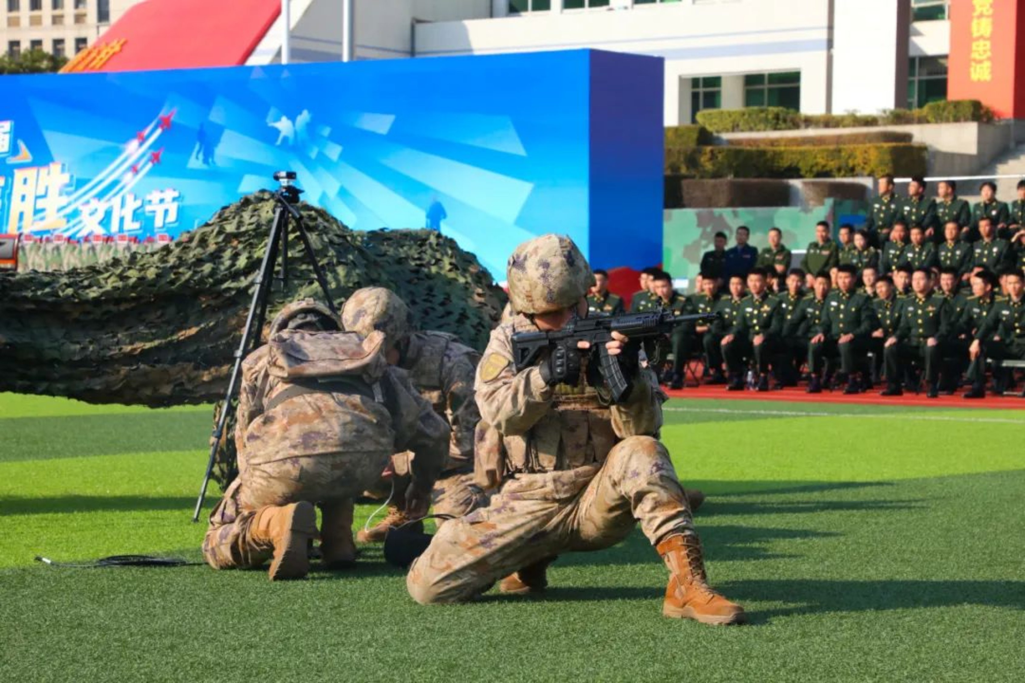 “接前沿部队报告,发现低空飞行目标!”硝烟弥漫中,任务分队穿插行进,灵活处置特情,现场气氛紧张激烈。